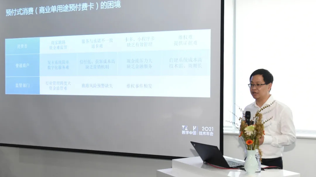 神州信息首席区块链专家、神州信息子公司神州方圆总经理陈宏鸿表示,预付式消费服务平台围绕企业商户个体、消费者、监管部门、银行监管账户、数字人民币智能合约,打造可信消费新模式,能够有效解决预付式消费生态中的痛点,激发消费市场价值潜力。